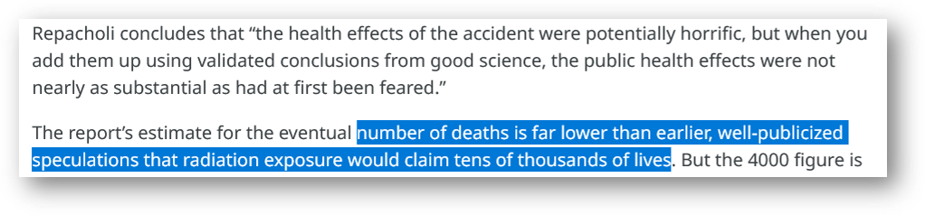 40 Jahre sind vergangen, aber “In Deutschland nichts Neues”. So zumindest der Eindruck, wenn man sich die Berichterstattung anschaut. Als ob nicht auch der Bericht der WHO zu den Folgen von Tschernobyl inzwischen 20 Jahre alt ist, in dem es heißt, »die Auswirkungen auf die öffentliche Gesundheit waren nicht annähernd so gravierend wie zunächst befürchtet«. Als ob es seit 1986 keine neuen Erkenntnisse in der Strahlenmedizin gegeben hätte: Bereits 2007 stellte die Internationale Strahlenschutzkommission (ICRP) fest: »Insbesondere die Berechnung von Krebstodesfällen auf der Grundlage kollektiver effektiver Dosen bei trivialen Expositionen großer Bevölkerungsgruppen ist nicht sinnvoll und sollte vermieden werden.” Im Jahr 2012 schließlich änderte auch »Wissenschaftliche Ausschuss der Vereinten Nationen zur Untersuchung der Auswirkungen atomarer Strahlung« (UNSCEAR) seine Empfehlungen für das Abfassen wissenschaftlicher Arbeiten zu den Folgen niedriger Strahlendosen für große Bevölkerungsgruppen. Spätestens seitdem sind all die gewaltigen Opferzahlen, die 1986 durch die Medien spukten und uns so viel Angst machten, veraltet. Sie waren schlicht falsch. Natürlich hindert das Greenpeace nicht daran, auch im Jahr 2026 noch immer die Zahl von 93.000 zu erwartenden Krebstoten zu verbreiten. Ermittelt mit veralteten Methoden und entgegen den Empfehlungen aller relevanten Fachgesellschaften – aber das erfährt man bei Greenpeace natürlich nicht.